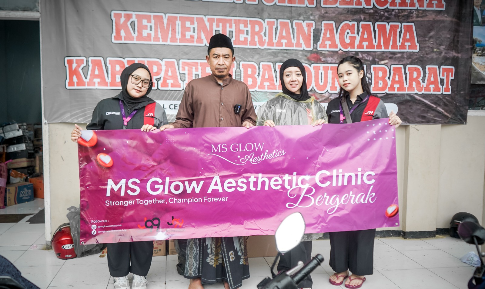 Sebagaimana diketahui, salahsatu unit bisnis J99 Corp. beroperasi di Bandung yakni MS Glow Aesthetic Clinic, yang kemudian bergerak ke lokasi bencana bersama tim J99 Foundation.