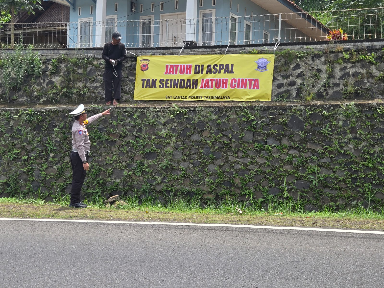 KAPOL.ID – Ada pemandangan menarik di sepanjang jalur Mangunreja-Salawu, Kabupaten Tasikmalaya. Sejumlah spanduk peringatan keselamatan berlalu lintas yang dipasang Unit Kamsel Satlantas Polres Tasikmalaya mendadak jadi buah bibir masyarakat karena kalimatnya yang “nyeleneh” dan memancing tawa.