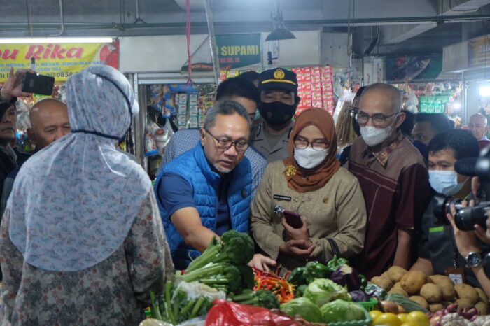 Peninjauan ke Pasar Kosambi itu juga merupakan rangkaian kunjungan Menteri Perdagangan RI Zulkifli Hasan.