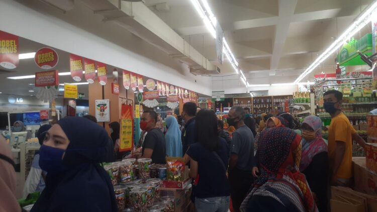 “Belanja susu anak dan keperluan sehari-hari saja. Katanya juga mau PSBB tanggal 6 Mei ini, jadi jaga-jaga saja mumpung masih bisa belanja,” kata Wati, salah seorang pembeli.