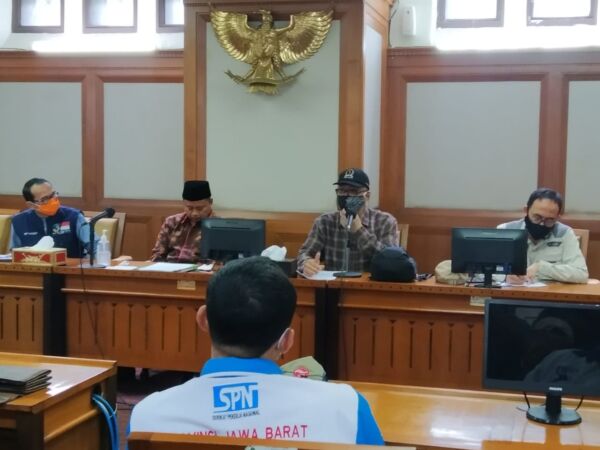 KAPOL.ID – Wakil Gubernur Jawa Barat Uu Ruzhanul Ulum didampingi Kepala Dinas Tenaga Kerja dan Transmigrasi (Disnakertrans) Jabar, Kepala Badan Kesatuan Bangsa dan Politik (Bakesbangpol) Jabar, dan Wakil Ketua Komisi V DPRD Jabar, menerima aspirasi dari buruh yang diwakilkan 17 serikat buruh yang ada di Jabar. Sabtu 1 Mei 2021.