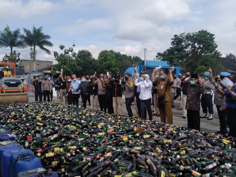 Jumlah barang bukti yang dimusnahkan, yakni 14.487.16 gram sabu, 1.500,64 gram ganja, obat-obatan 161.518 butir , 120.641,74 gram tembakau gorila, 20.057 botol miras, 1.280 liter tuak. ***