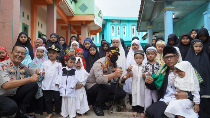 Kapolres tak bisa menyembunyikan kegegembiraan berinteraksi dengan anak yang berada di pesantren.