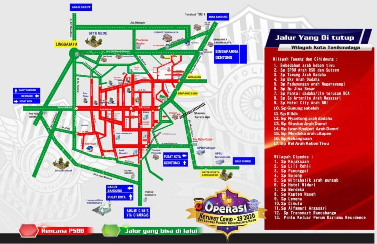 Meskipun dalam gambar tertera 30 ruas jalan yang bakal ditutup di tiga kecamatan merupakan Operasi Ketupat Covid-19 Satlantas Polres Tasikmalaya Kota.