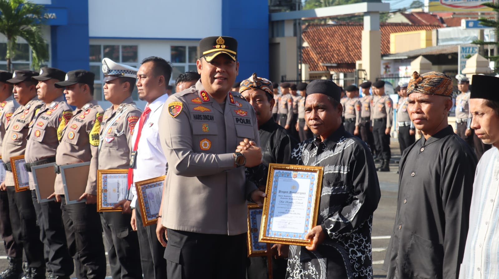 KAPOL.ID — Kapolres Tasikmalaya, AKBP Haris Dinzah memberikan penghargaam kepada anggota dan warga berprestasi atas dedikasinya membantu kamtibmas. Pemberian penghargaan tersebut berlangsung pada Senin (6/1/2025), di halaman Mapolres Tasikmalaya.