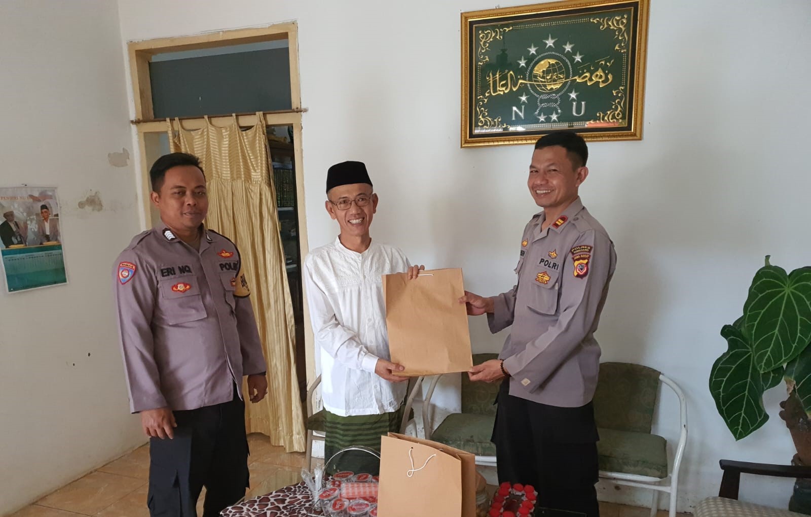 Kapolsek Ganeas Iptu Dede Husen memberikan cindera mata kepada tokoh masyarakat.