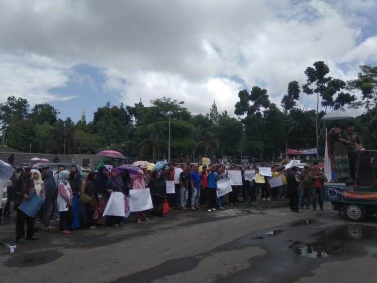 Walau sempat dihadang guyuran hujan, mereka tetap bergerak. Demi beraudiensi dengan Dewan Perwakilan Rakyat Daerah (DPRD) Kabupaten Tasikmalaya. Ada beberapa aspirasi yang mereka anggap penting untuk disampaikan.