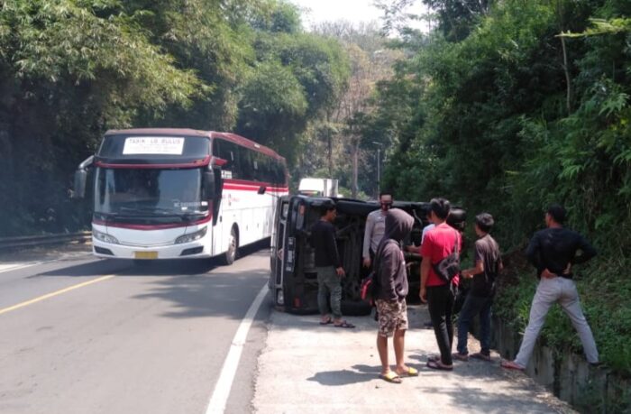 Kecelakaan tunggal terjadi sekira pukul 12.30 WIB di Turunan Puspa kawasan Kadipaten Gentong Kabupaten Tasikmalaya.