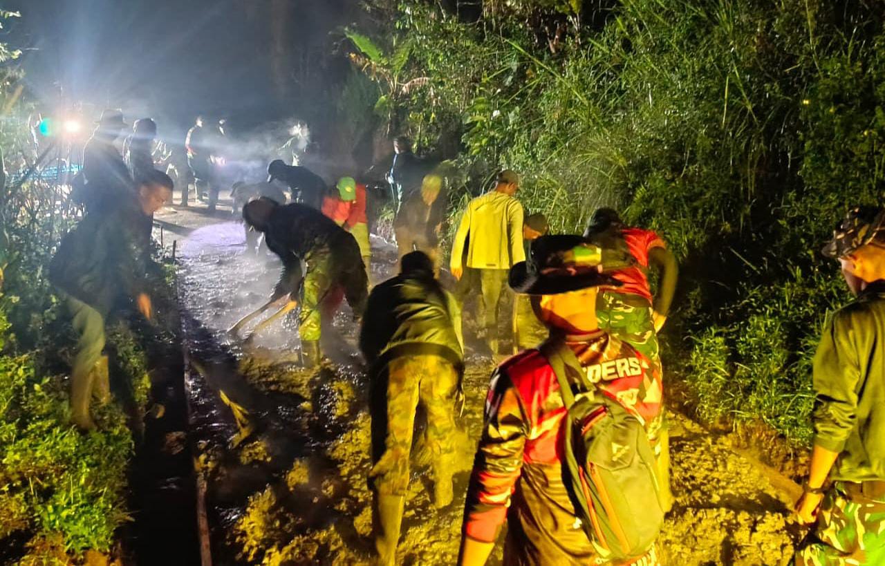 KAPOL.ID – Satgas TMMD Reguler ke-127 Kodim 0624/Kabupaten Bandung patut diacungi jempol. Demi mengejar target pembangunan jalan sepanjang 1,5 kilometer di Desa Cipelah, Kecamatan Rancabali, para prajurit ini rela “lembur” hingga larut malam.