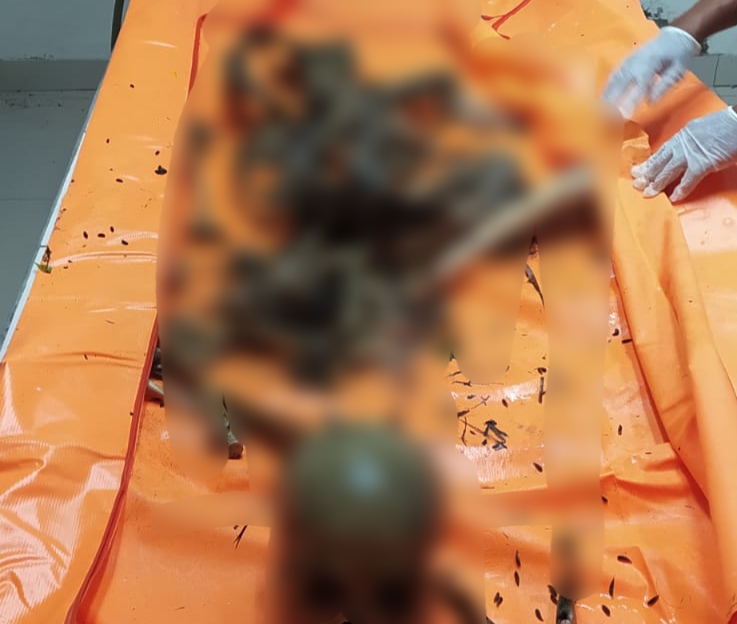 Berdasarkan hasil pemeriksaan, diduga mayat tersebut berjenis kelamin laki-laki. Saat ditemukan dalam posisi terlentang, masih terbalut baju kaos warna abu, celana pendek coklat dan mengenalan sandal karet biru.