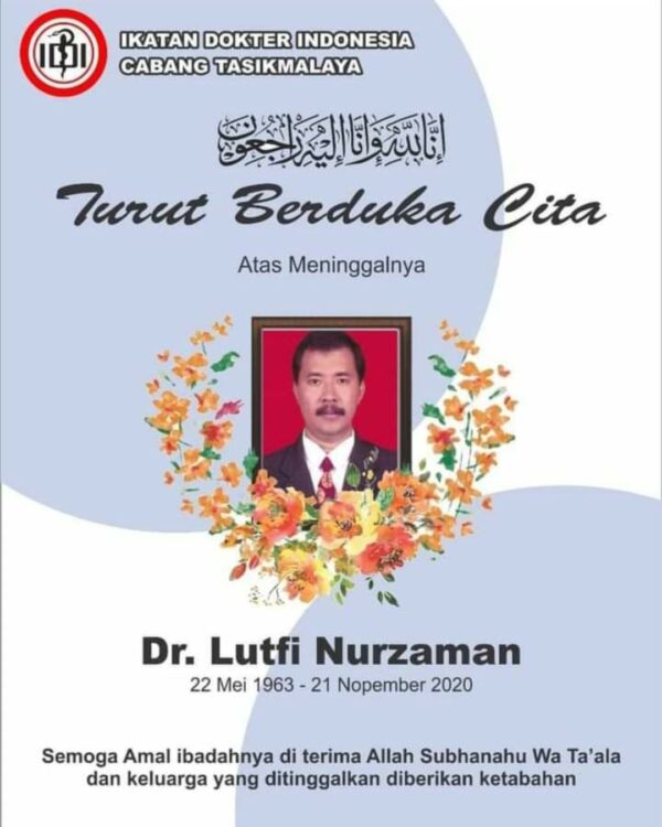 KAPOL.ID–Covid-19 merenggut hayat dr. Lutfi Nurzaman. Ia menghembuskan napas terakhirnya pada Sabtu (21/11/2020), pukul 16.64, di rumah sakit. Beberapa hari sebelumnya ia terkonfirmasi positif Covid-19.