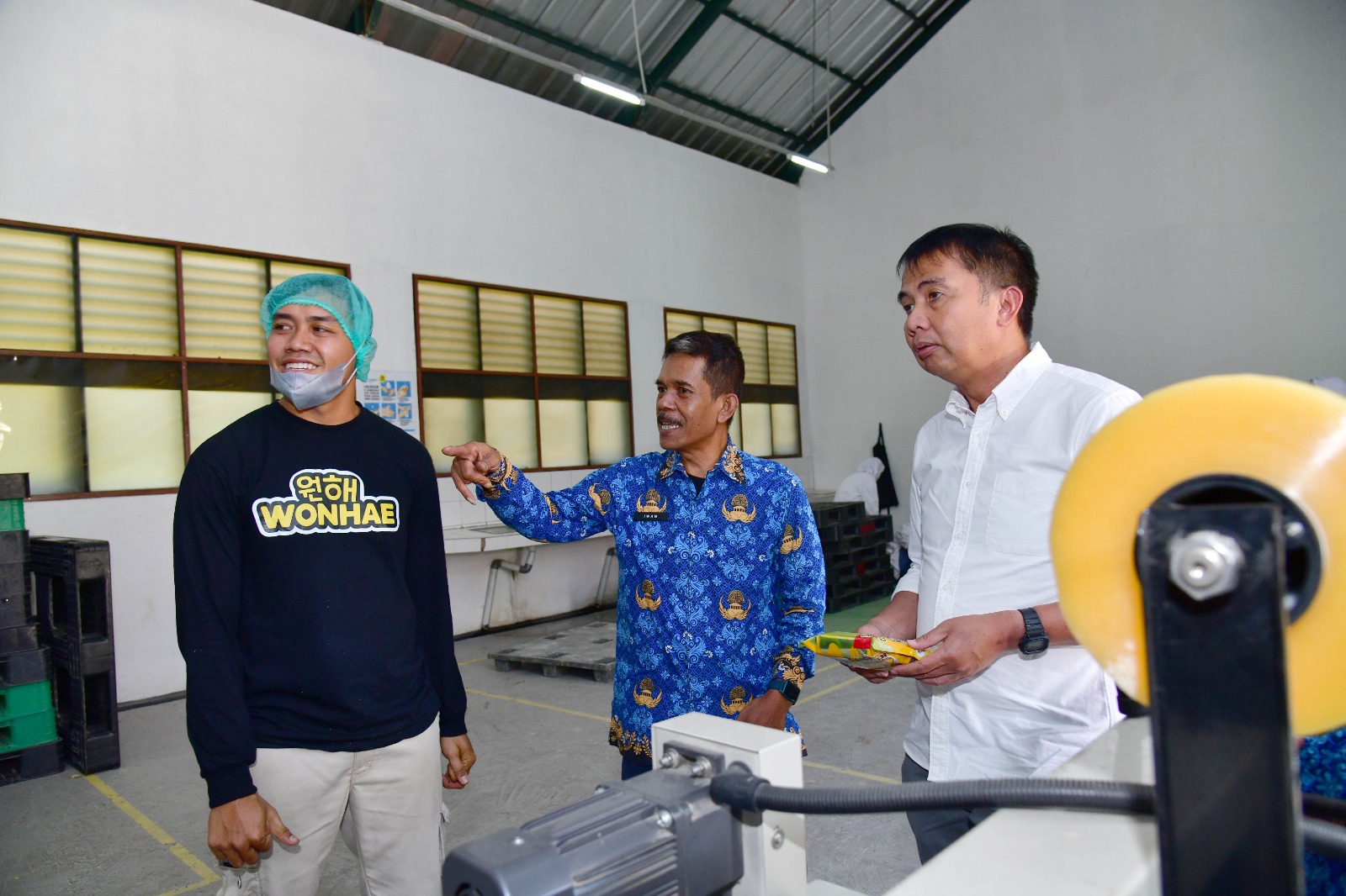 KAPOL.ID — Penjabat Gubernur Jabar Bey Machmudin terkesan dengan proses pengemasan mi wonhae dan woca cokelat yang dilakukan para siswa SMK Negeri 1 Cibadak, Kabupaten Sukabumi.