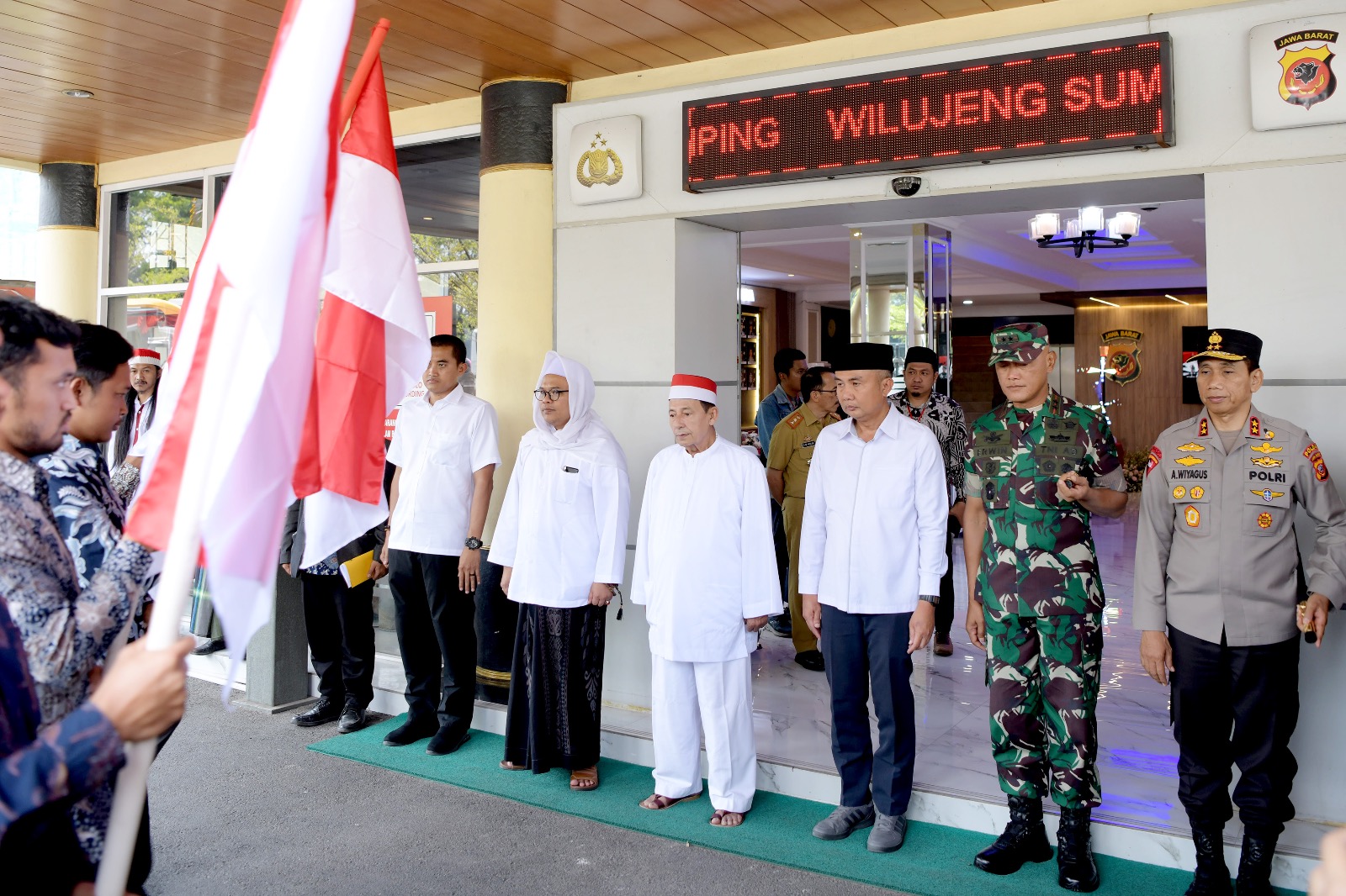 Dimulai dari Mapolda Jabar, Bey dan Habib Luthfi beserta jajaran Forkopimda Jabar, tokoh masyarakat, tokoh agama, dan unsur lainnya konvoi menuju GBLA dengan membawa atribut bernuansa merah putih.