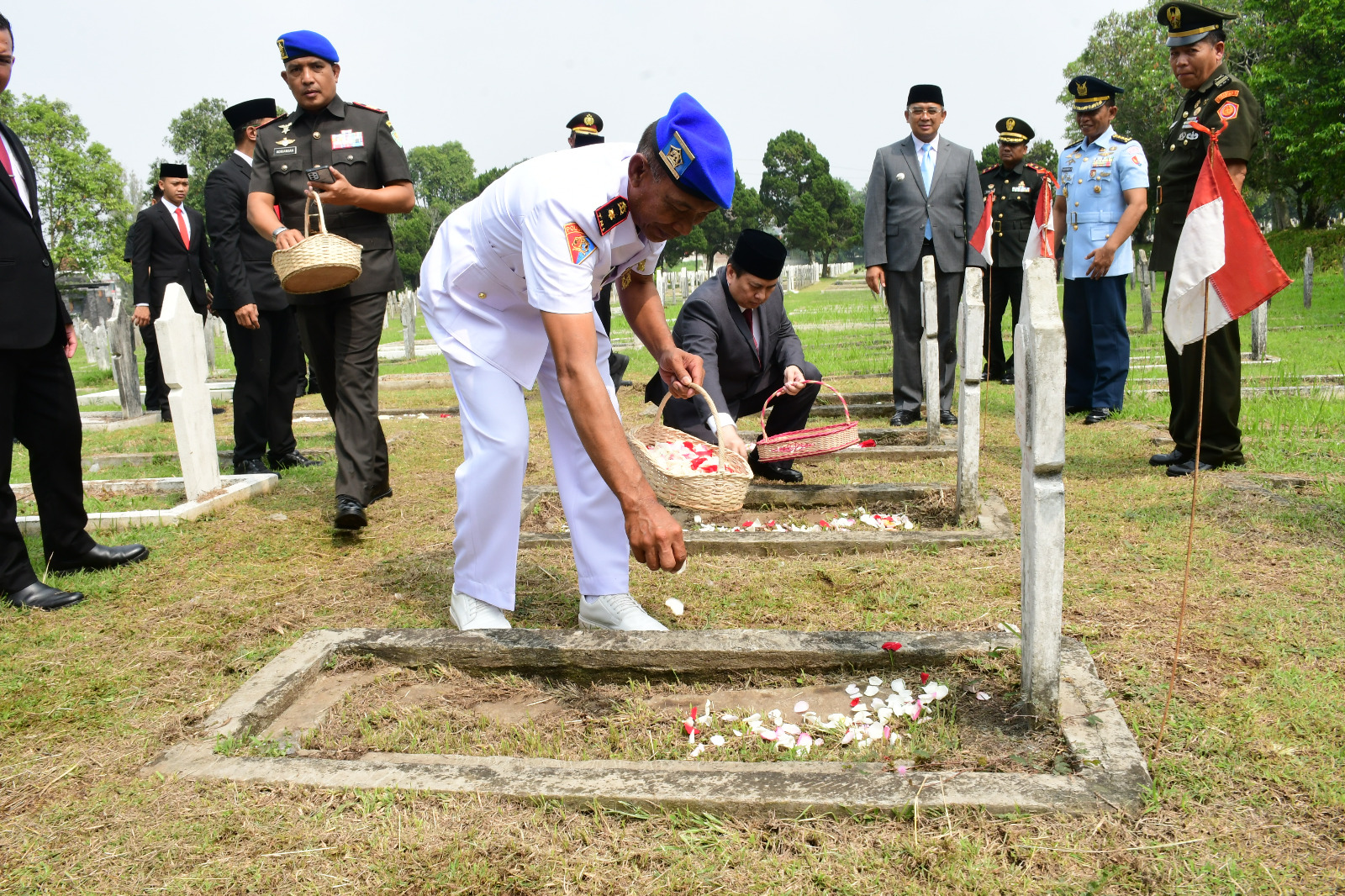 Menutup rangkaian kegiatan di TMP Cikutra, doa bersama dipanjatkan bagi para pahlawan yang telah gugur. Farhan juga menitipkan pesan mendalam bagi anggota TNI, Polri, Satpol PP, hingga generasi muda Pramuka.