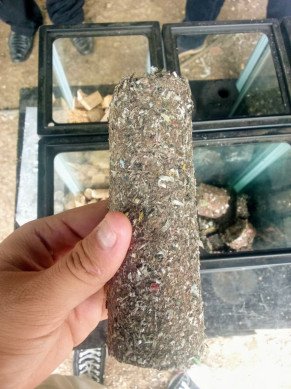 Kemudian, cacahan sampah tersebut diberi tepung tapioka dan dicampur ramuan semacam zat adiktif seperti serbuk pakan ikan. Setelah dimasukkan ke dalam alat lainnya jadilah briket.