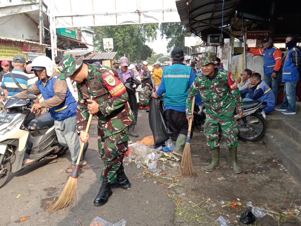 Koramil 1811/UBR Bahu Membahu Bersihkan Kawasan Pasar dan Alun-alun Ujung Berung