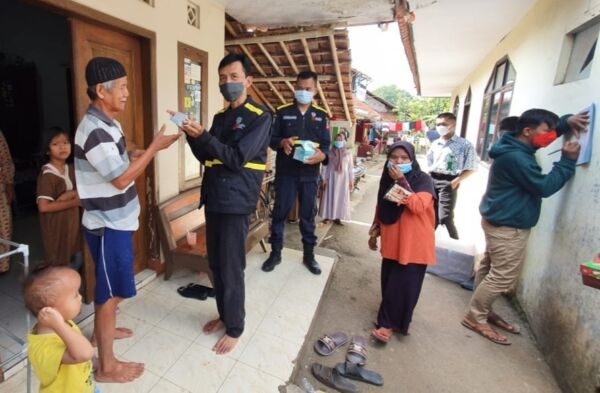 Satgas Covid-19 Kecamatan Purbaratu Kota Tasikmalaya membagikan makanan dan santunan kepada warga.