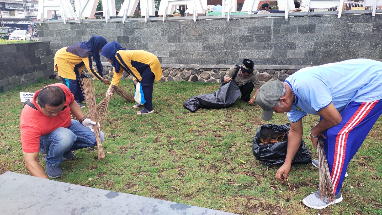“Pada hari Jumat saya dan staf kecamatan bersama warga sedang gotong royong beberesih di taman.”