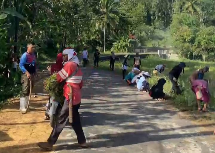 “Kami bersama warga melakukan gotong royong pembersihan dan pemotongan rumput di Jalan Leuwipicung Desa Kertasari Sabtu kemarin.”