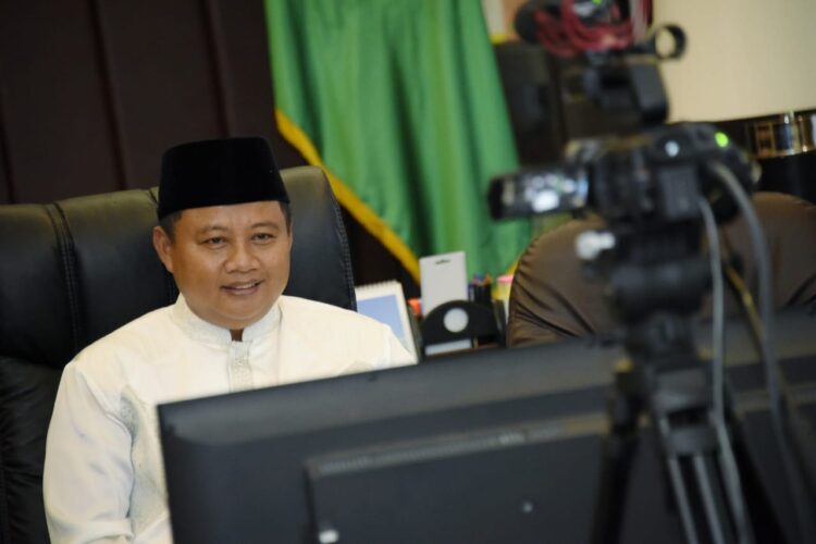 KAPOL.ID – Wakil Gubernur Jawa Barat (Jabar) Uu Ruzhanul Ulum menghadiri video conference Forum Pondok Pesantren (FPP) dan Kiai Sepuh Pimpinan Pondok Pesantren di Jabar dalam rangka Rencana Pembentukan Dewan Masyayikh Jabar, di Gedung Sate, Kota Bandung, Senin (29/6/20).