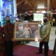 Herman Sutrisno memakai pakaian batik berlatar warna coklat kekuningan didampingi oleh tiga orang.
