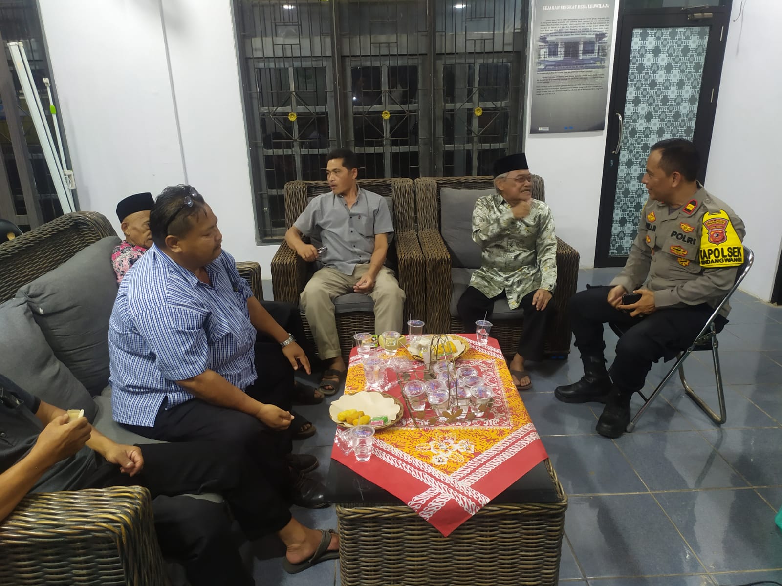 Terlihat, IPTU Wili Rukwili dan H. Edi berbicara tentang berbagai hal yang berkaitan dengan situasi kamtibmas di wilayah Sindangwangi.