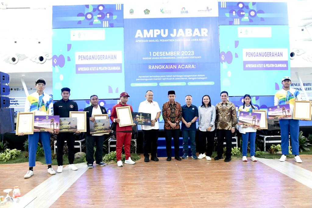 Pemberian penghargaan bertajuk Apresiasi Masjid, Pesantren dan Ulama Jawa Barat (AMPU Jabar) itu digelar di Bandara Internasional Jawa Barat (BIJB) Kertajati, Kabupaten Majalengka, Jumat (1/12/2023).