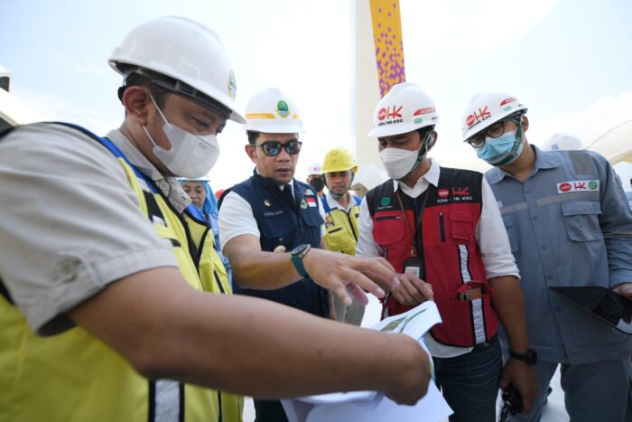Gubernur Jawa Barat Ridwan Kamil meninjau langsung ke lokasi untuk memastikan progres pembangunannya, Sabtu (2/7/2022).