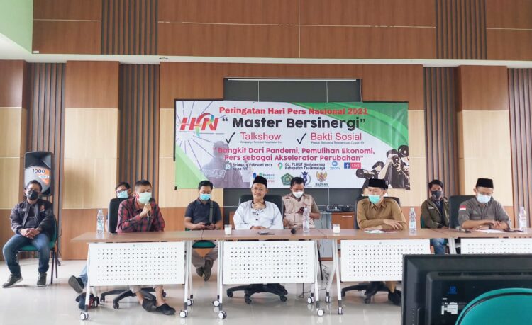 Master Kantor Kemenag mengemas peringatan HPN 2021 dalam bentuk talk show, di Gedung PLHUT Kemenag, bersinergi dengan Baznas dan sejumlah awak media.