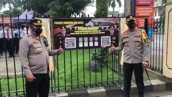 Masyarakat yang hendak ke Mapolres Tasikmalaya Kota dan Polsek diwajibkan untuk scan barcode aplikasi pedulilindungi mulai, Senin (27/9/2021).