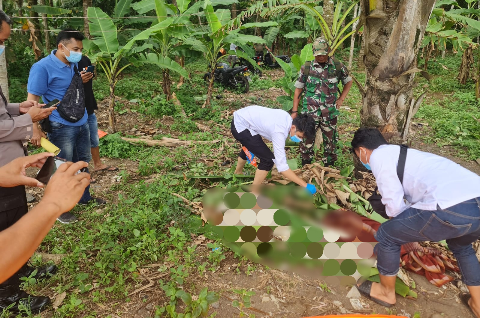 Lalu mencoba mendekat untuk memastikan apa yang dilihatnya. Ternyata temuan tubuh manusia yang kulitnya sudah memutih tersebut benar adanya.