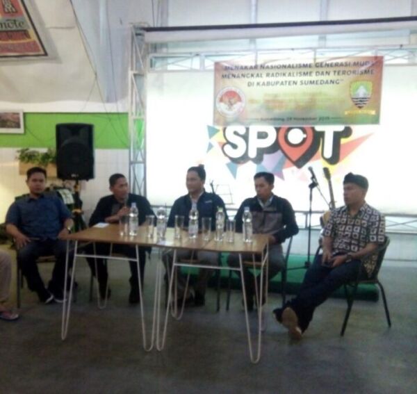 SUMEDANG, (KAPOL).- Sekira 20 komunitas dan organisasi kepemudaan di Kabupaten Sumedang, mengikuti kegiatan Forum Group Discusion (FGD) dengan tema, “Menakar Nasionalisme Generasi Muda, Menangkal Radikalisme dan Terorisme di Sumedang” yang digelar Forum Kewaspadaan Dini Masyarakat (FKDM) Kabupaten Sumedang, bertempat di Spot Cafe jln. Anggrek nomor 99, Jum’at (29/11/2019).