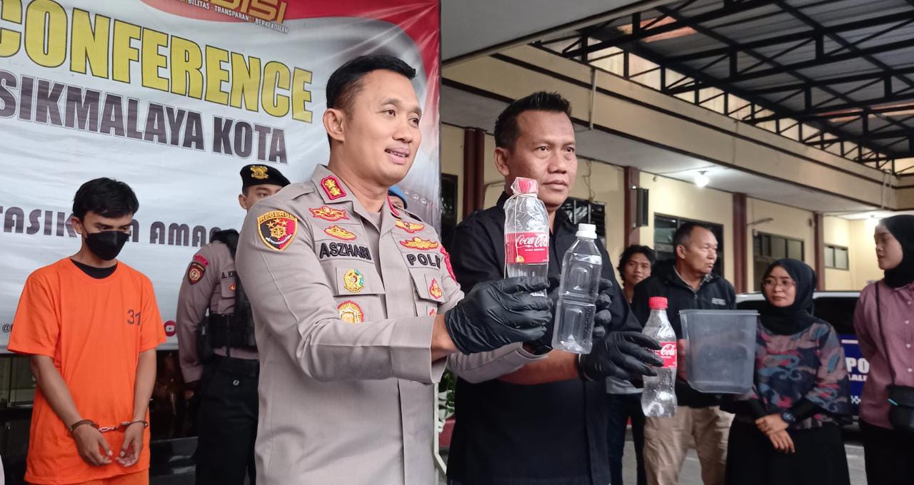 Kapolres Tasikmalaya Kota, AKBP Aszhari Kurniawan membeberkan, seorang peracik miras oplosan berhasil diamankan.
