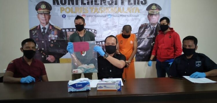 Selain tersangka, Polres Tasikmalaya juga berhasil mengamankan dua buah barang bukti berupa celana dalam dan satu hand body yang disita dari pelapor.