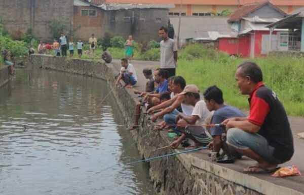 Warga Tuguraja RW 04, 06, 07, 08 Kecamatan Cihideung Kota Tasikmalaya menyambut bulan ramadan dengan memancing ikan di Sungai Cikalang, Sabtu (10/04/2021).