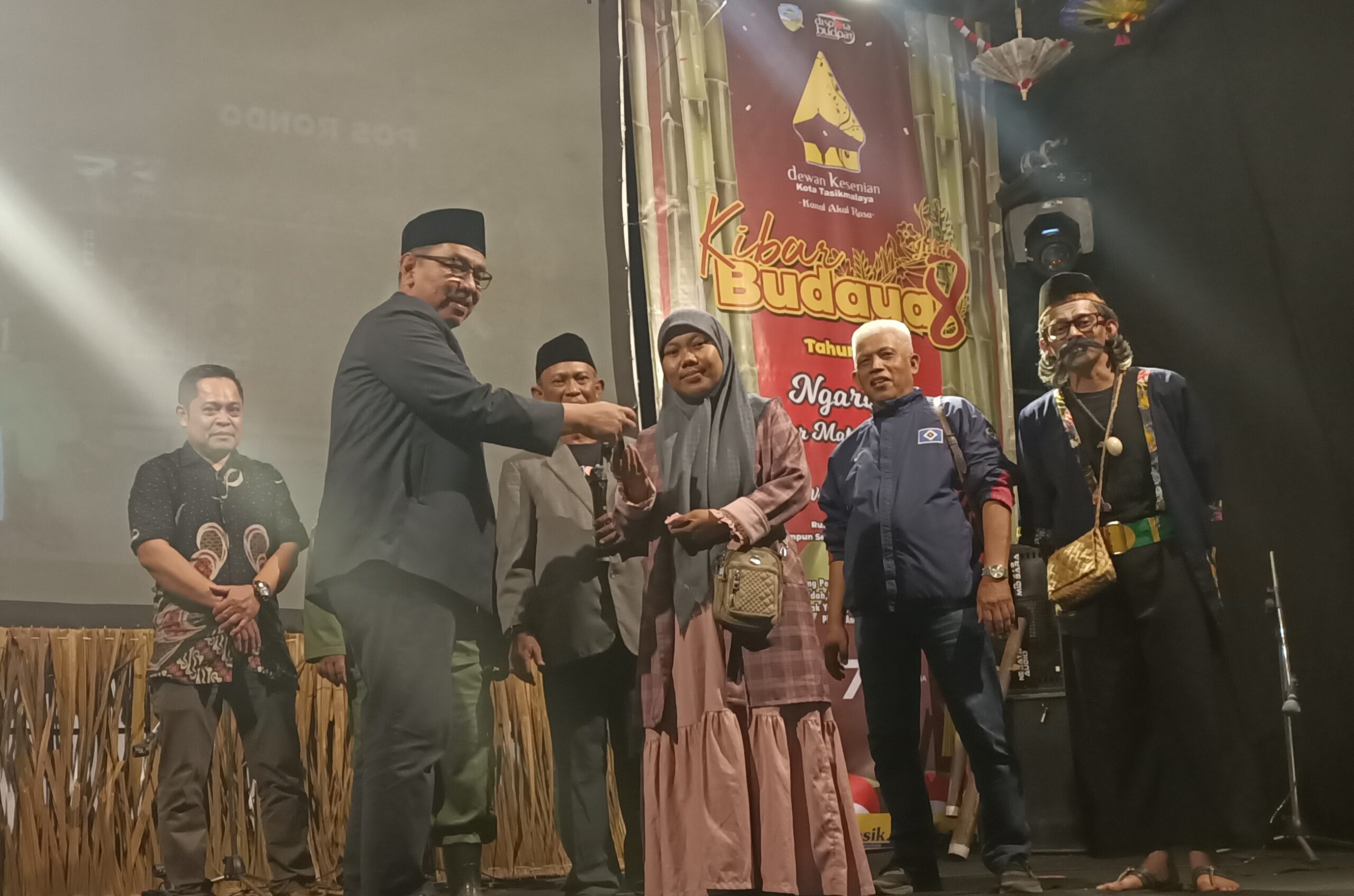 Mereka menyaksikan gelaran budaya dalam Kibar Budaya Jilid 8 Dewan Kesenian Kota Tasikmalaya (DKKT) berkolaborasi dengan warga setempat.