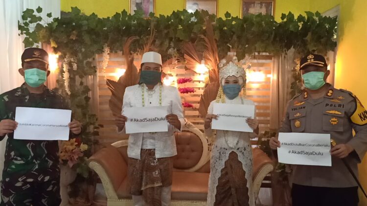 “Pembatasan tamu undangan yang hadir menyaksikan akad nikah di kediamannya. Selain itu, pasangan pengantin menggunakan masker, sarung tangan, dan para tamu undangan melakukan cuci tangan sebelum kegiatan serta menjaga jarak setiap orangnya” Tambahnya.