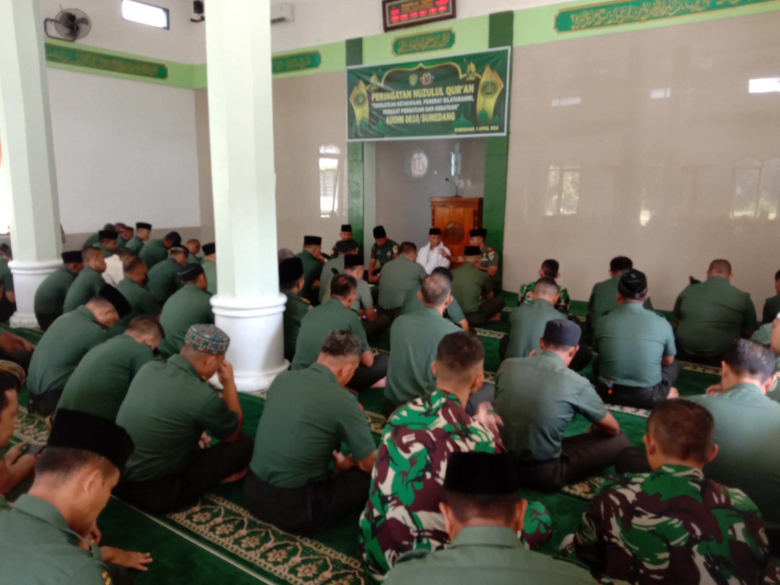 KAPOL.ID – Kodim 0610 Sumedang memperingati Nuzulul Qur’an 1445 H di Masjid At Taqwa pada Senin (01/04/2024).
