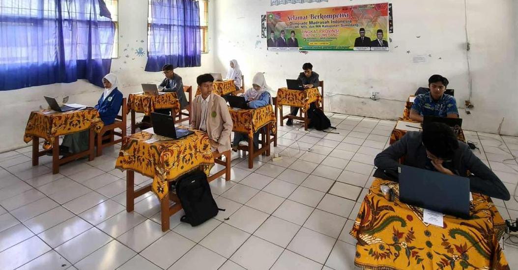 KAPOL.ID — Tampak seius para peserta mengikuti Olimpiade Madrasah Indonesia (OMI) jenjang MI, MTs, dan MA Tingkat Provinsi Jawa Barat yang digelar di MTsN 3 Sumedang, Desa Cijati, Kecamatan Situraja. Kamis, (02/10).