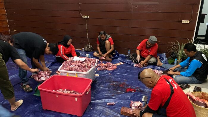 “Alhamdulillah, hari ini PDI Perjuangan Jawa Barat menyiapkan 7 ekor sapi dan 1 kambing untuk disembelih. Ini merupakan wujud syukur dan kepedulian kami kepada masyarakat dan juga para kader. Beberapa juga kami salurkan ke Nadhatul Ulama, Muhammadiyah dan Gema Pasundan,” kata Ketua DPD PDI Perjuangan Jabar Ono Surono melalui Sekretaris Ketut Sustiawan disela pembagian daging kurban.