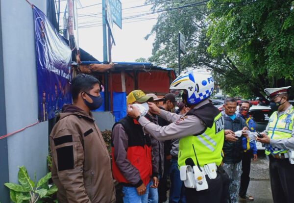 KAPOL.ID – Jajaran Unit Lantas Polsek Panyileukan Polrestabes Bandung melaksanakan pembagian masker.