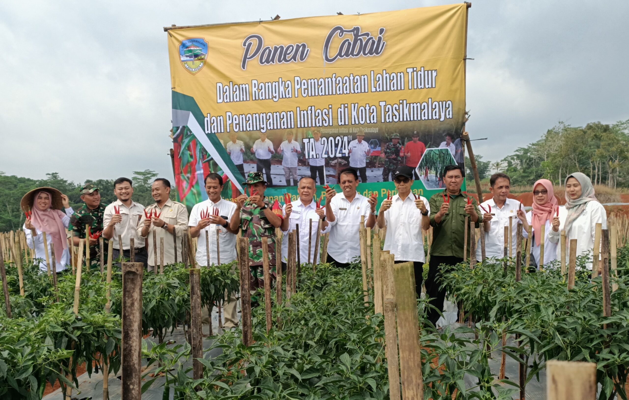 Pemerintah Kota Tasikmalaya melakukan panen perdana cabai merah TW dari lahan tidur pemakaman umum Aisyah Rashida Tamansari, Rabu (19/6/2024).