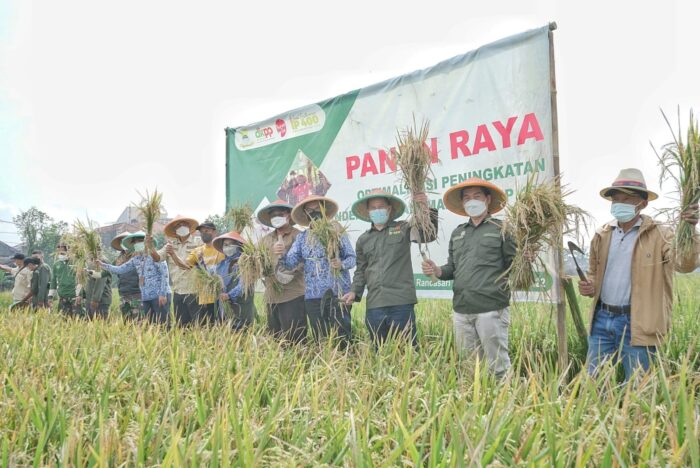 KAPOL.ID – Panen raya padi berlangsung di Kelurahan Derwati Kecamatan Rancasari Kota Bandung, Selasa, 17 Mei 2022.