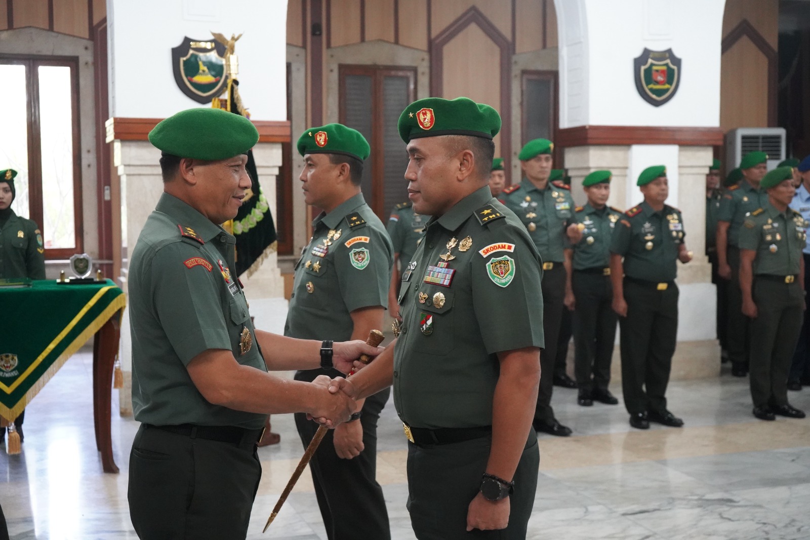 KAPOL.ID – Pangdam III/Siliwangi Mayjen TNI Dadang Arif Abdurahman, S.E., M.Si., CHRMP., memimpin acara Tradisi Korps dan Serah Terima Jabatan (Sertijab) Kasdam III/Slw bertempat di Ruang Silihwangi Makodam III/Siliwangi, Senin (04/08/2025).