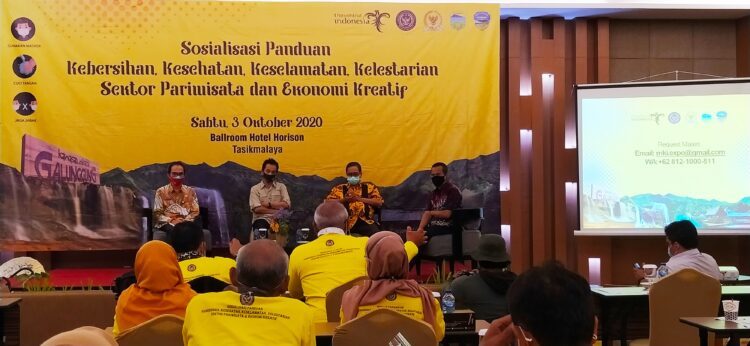 Panitia acara yang digelar di Hotel Horison Kota Tasikmalaya pada Sabtu (3/10/2020) tersebut mengundang banyak pihak. Antara lain jajaran SKPD terkait dan pejabat kecamatan yang di wilayahnya terdapat tempat wisata. Acara sendiri digelar untuk memastikan setiap pelaku usaha di sektor pariwisata dan ekonomi kreatif selalu berperang melawan Covid-19.