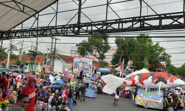 BANJAR, (KAPOL).- Ribuan warga mengikuti pawai alegoris dan pesta rakyat memeriahkan HUT ke-74 Kemedekaan RI di jalan Letjen Suwarto Kota Banjar, Selasa (20/8/2019).