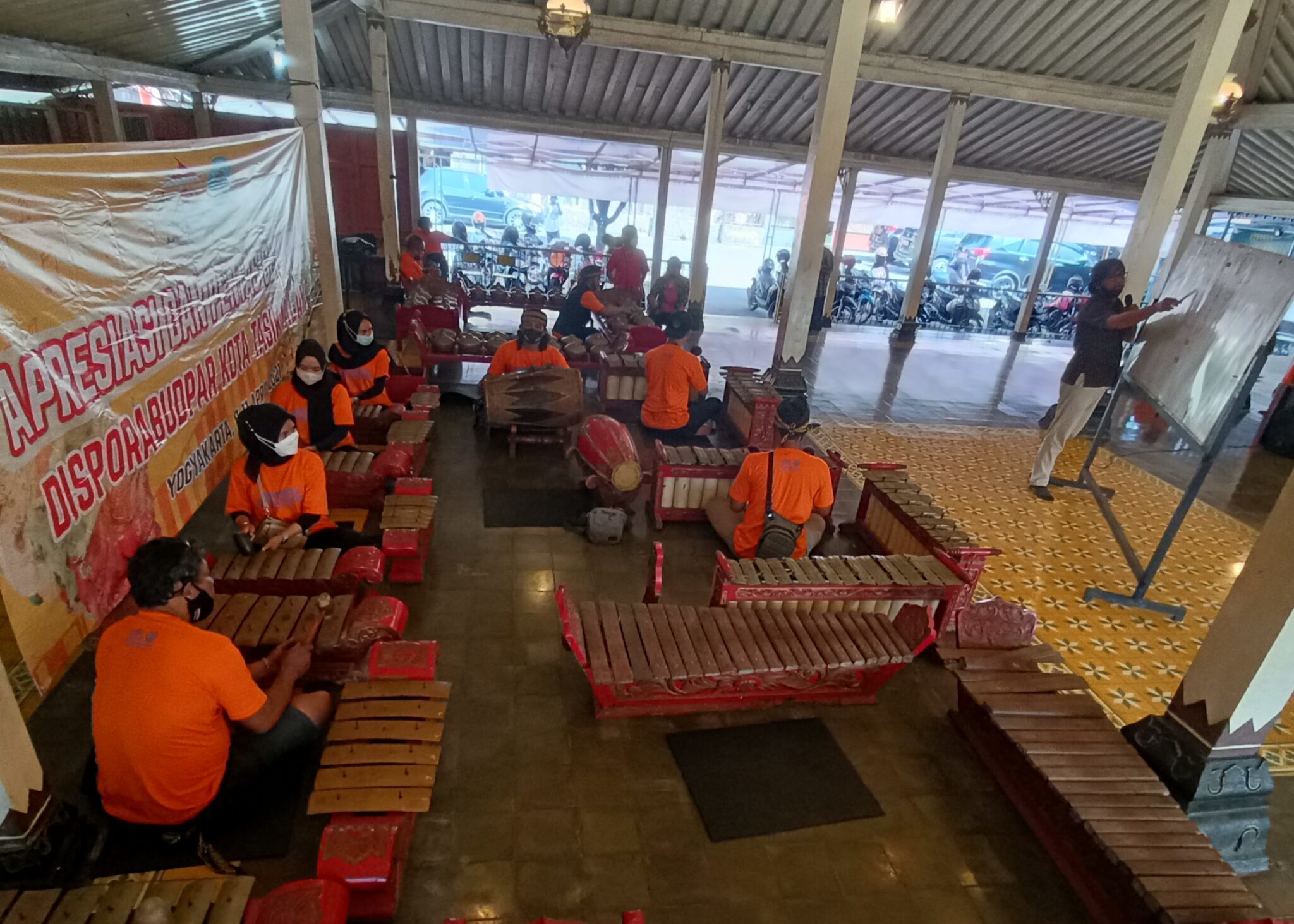 Pelaku seni Kota Tasikmalaya belajar karawitan dan tari di Pendopo Dalem Pujokusuman Yogyakarta, Kamis (08/04/2021).