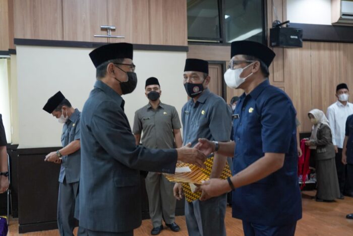 Wali Kota Tasikmalaya H. Muhammad Yusuf melantik dan mengambil sumpah jabatan 48 kepala sekolah (kepsek) di Aula Balai Kota Tasikmalaya, Senin (14/2/2022).