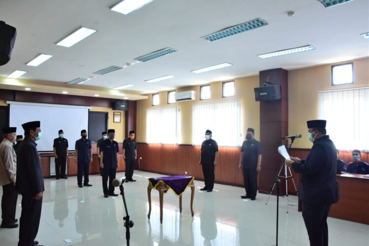 Saat pelantikan menerapkan phsyical distanting, yakni jarak antar pejabat dibatasi satu meter. Begitupula tamu undangan yang hadir.