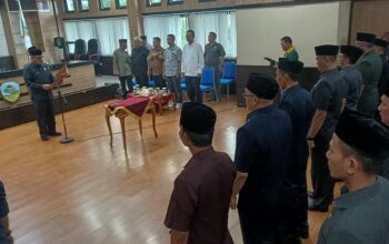Pelantikan pejabat Pemerintah Kota Tasikmalaya di Aula Badan Kepegawaian Pengembangan Sumberdaya Manusia (BKPSDM) berlangsung tidak seperti biasanya, Kamis (9/4/2020).
